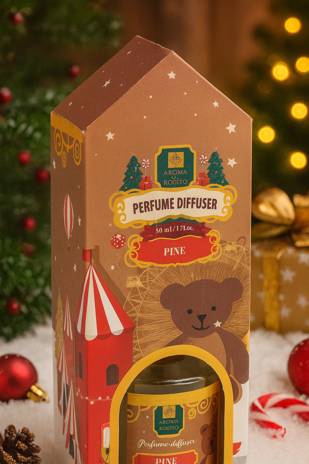 Ambalajul sub forma de casuta festiva, decorat cu ilustratii de Craciun, accente aurii si detalii de iarna, transforma acest diffuser intr-un obiect decorativ elegant. Aspectul sau cald si jucaus completeaza armonios decorul sarbatorilor si il face o alegere excelenta pentru un cadou special.