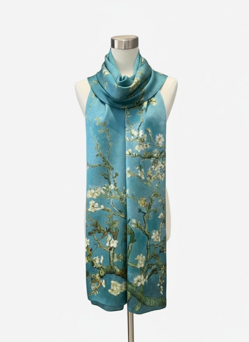 Alege eșarfa Van Gogh „Almond Blossom” și adaugă un plus de personalitate și rafinament garderobei tale. Perfectă pentru tine sau pentru a fi oferită cadou unei persoane speciale.