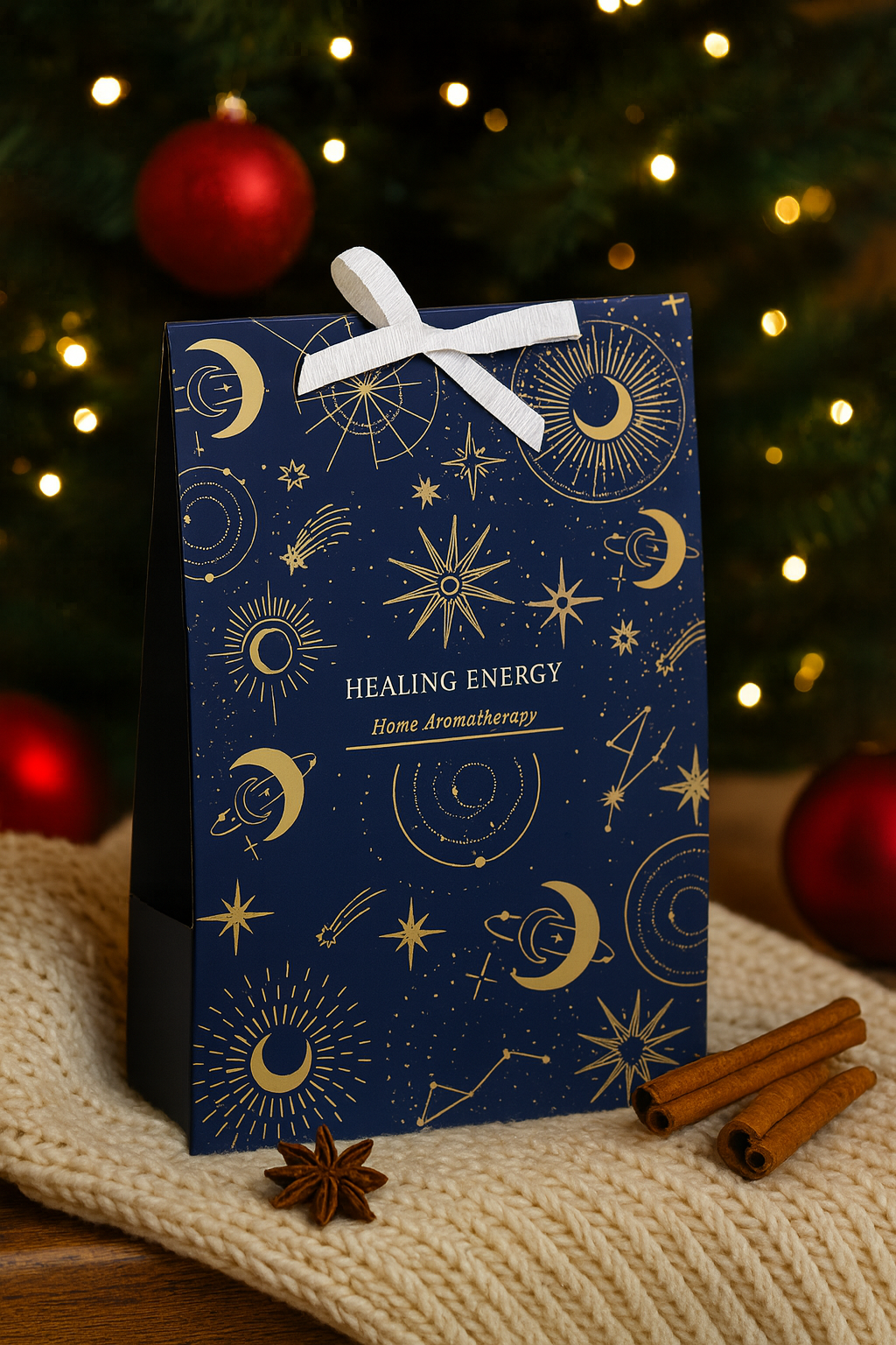 Plicul Parfumat Craciun Healing Energy aduce un plus de prospetime si atmosfera festiva in orice spatiu. Cu un design elegant decorat cu motive lunare si solare aurii, acest plic parfumat este ideal pentru a crea o ambianta calda si primitoare in sezonul sarbatorilor.